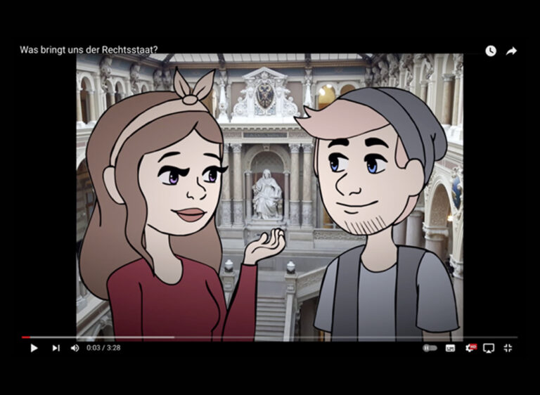 Video für den Verein Justizgeschichte und Rechtsstaat Das Kurzvideo zeigt die Gespräche der beiden Jugendlichen Justine und Victor über die „unzertrennbaren Drei“ Demokratie, Menschenrechte und Rechtsstaat. Damit sollen Diskussionen und Projekte mit Schülerinnen und Schülern über die Grundwerte des demokratischen Rechtsstaats…
